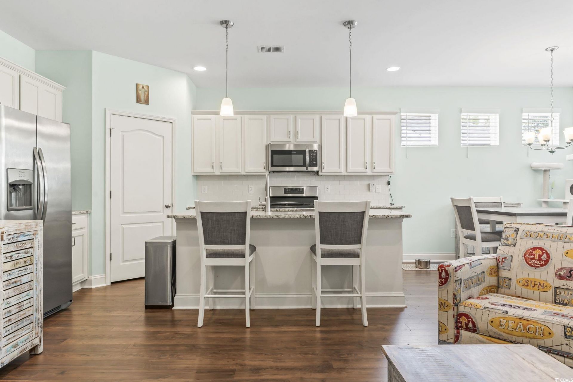 Discover this stunning 4-bedroom, 2-bath single-story home in the sought-after River Haven community. Surrounded by natural beauty, residents enjoy wooded landscapes, scenic walking trails, a 40-acre lake with a boat ramp to the Waccamaw River, as well as a sparkling pool and cabana. This home features the popular Harmony floor plan by H&H Constructors, thoughtfully designed for modern living. The gourmet kitchen showcases granite countertops, white cabinetry, a stylish backsplash, stainless steel appliances, and durable LVP flooring. The open-concept layout flows seamlessly into the dining/breakfast nook and spacious living areaideal for both everyday living and entertaining. The luxurious owners suite offers a private retreat with a large walk-in closet, double-sink vanity, walk-in tile shower, private water closet, and ample linen storage. A desirable split-bedroom layout places three additional bedrooms and a full bath just off the foyer, providing both comfort and privacy. Step outside to your own private oasisa screened porch overlooking a beautifully landscaped backyard with a paver patio, perfect for morning coffee or evening gatherings. Additional highlights include a convenient drop zone, laundry room, and coat closet off the garage entry. Blending style, function, and exceptional community amenities, this home truly has it all!