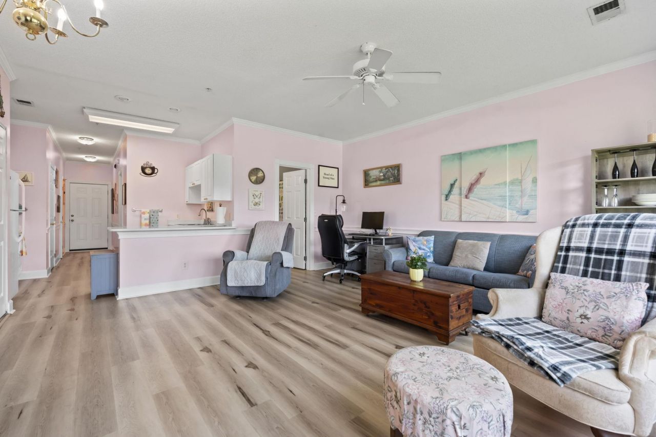 This stunning second-floor 1-bedroom, 1.5-bath condo offers beautiful views of Myrtle woods renowned Pine Hills Golf Course and overlooks one of Magnolia Norths sparkling community pools. This spacious one bedroom floor plan available in the community, is perfect for comfort and functionality. Recent upgrades include new floors with new sub flooring, all new appliances and a new HVAC system, and finally new kitchen counters.The unit includes a roomy half bath, a generous storage closet perfect for your beach and golfessentials, and a convenient in-unit washer and dryer. With a king bed and pull out couch, the condo can easily accommodate four guests. Everything you see inside conveys with the sale, making this a truly turn-key opportunity. Freshly painted bathrooms in a calming light blue, all cabinets painted crisp white, and matching updates to the baseboards, chair rail, and crown molding make for a clean,modern look. Magnolia North residents enjoy access to multiple community pools, scenic walking and biking paths, outdoor BBQ areas,two championship golf courses, and a driving range. The location is unbeatable just 1.5 miles from the beach and minutes from Broadway at the Beach, top-rated dining, shopping, golf, Grand Strand Hospital, and more. Dont miss your chance to own this beautifully maintained and move-in-ready condo!